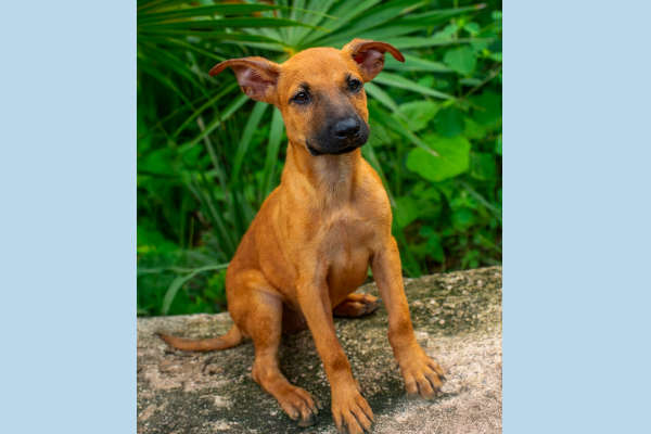 Tatia es una perrita que combina dulzura con un toque de misterio. Su pelaje color canela brilla como arena al sol, y en el hocico lleva una máscara oscura que resalta su mirada profunda y curiosa. Su naricita negra siempre está lista para olfatear nuevas aventuras, y sus ojos delineados parecen dibujados con lápiz fino, llenos de expresión y ternura. Tatia es belleza con carácter, lista para encontrar a quien la mire y no quiera dejarla ir.