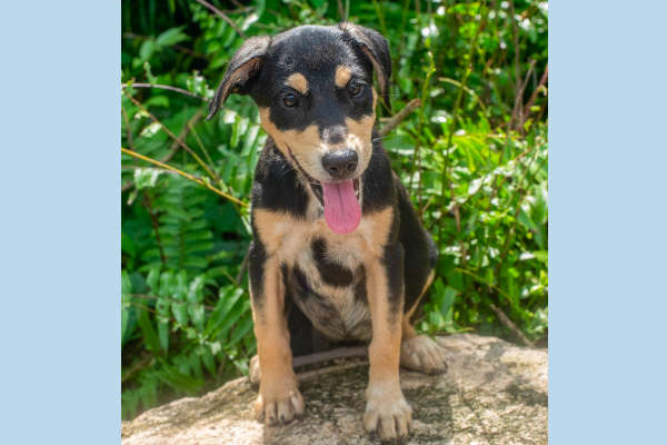 Tiffany es una perrita que parece diseñada con pinceles de ternura y elegancia. Su pelaje negro sirve de lienzo para un patrón simétrico de toques canela, beige y blanco que adornan su rostro y sus patitas como si llevara maquillaje natural y botines suaves. Su hocico beige y su naricita negra resaltan su expresión dulce, mientras que sus cejas beige le dan una mirada curiosa y encantadora. Tiffany es belleza en equilibrio, lista para conquistar corazones con solo una mirada.