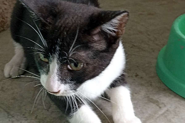 Pimienta es una gatita tuxedo con elegancia natural y mirada encantadora. Su lomo y cabeza negros contrastan con el blanco brillante de sus patas y cuello, como si llevara un trajecito formal hecho a medida. Su hocico blanco le da un toque dulce, y sus ojos verdes, grandes y expresivos, parecen dos esmeraldas curiosas que todo lo observan. Pimienta es estilo, ternura y personalidad felina en una presentación impecable.