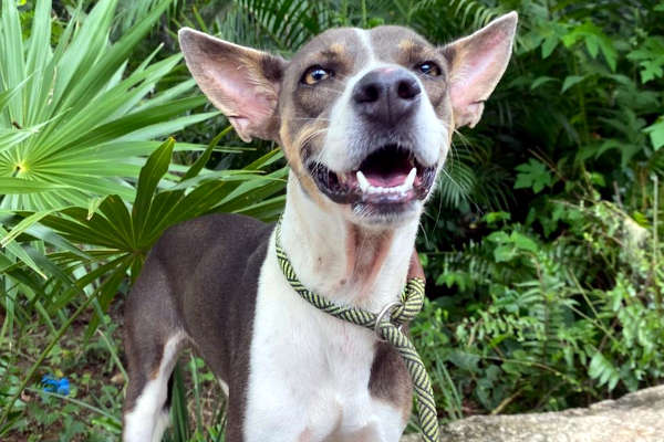 Esmeralda es una perrita de mediana talla con figura esbelta y porte encantador. Su lomo gris contrasta con el blanco brillante de sus patas, cuello y pecho, como si llevara un abrigo elegante sobre una blusa clara. Su cabeza, mayormente gris, luce delicados toques café que le dan calidez, y su hocico blanco con naricita negra enmarca una expresión dulce y curiosa. Sus ojos color miel brillan con ternura, y una mancha café cubre su garganta como si llevara una bufanda pintada por la naturaleza. Esmeralda es belleza serena, lista para llenar tu vida de luz y compañía.