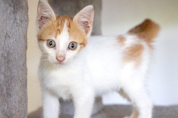 Tim es un gatito blanco con detalles tabby naranja que adornan la parte superior de su cabecita y orejas, y reaparecen como un rayito de sol en la parte baja de su espalda y su cola. Su naricita rosa le da un aire dulce y juguetón, como si siempre estuviera listo para una nueva travesura. Con su carita simpática y su pelaje luminoso, Tim es un pequeño explorador felino que está listo para llenar tu hogar de alegría y ronroneos.