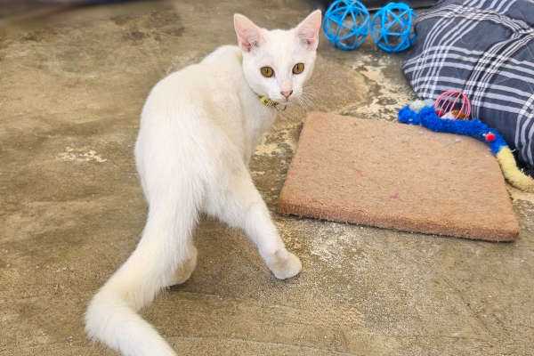 Lima is a charming snowball of white fur and orange eyes, with a pink nose that could make roses jealous. This feline princess arrived at the CCSA with her loyal entourage, the inseparable Limón, Litchi and Lucy.