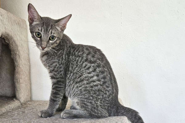 Austin is a playful and lovable gray tabby kitten with soft fur marked by fine, pencil-drawn stripes. His olive-green eyes sparkle with curiosity and charm, like he's always dreaming up his next adventure. And that rosy little nose? It’s the cherry on top that makes him totally irresistible. This tiny explorer is all set to steal your heart!