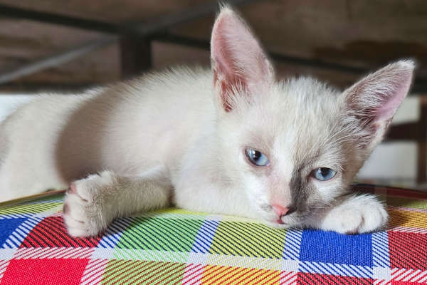 Lupita is a Siamese mix kitten with the charm of a watercolor painting. Her nose, half black and half pink, gives her a playful and unforgettable look. Soft gray accents on her ears and face create a gentle contrast against her light fur, like she's wearing a misty little mask. Her bright blue eyes gaze at you with sweetness and curiosity. Lupita is the kind of beauty that lingers in your heart… a feline muse ready to inspire love every single day!