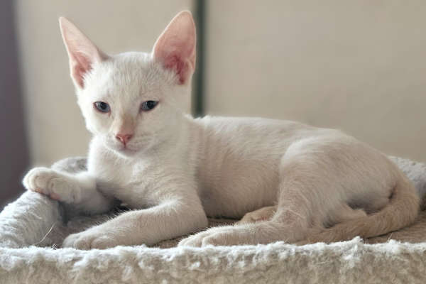 Lobo is a white kitten as soft as sea foam, with big, expressive ears that give him a look of constant curiosity. His pink nose adds a sweet, playful touch, and his blue eyes—bright as the Puerto Vallarta sky—gaze at you with a mix of innocence and mischief. Lobo’s charm is unforgettable: delicate, fun-loving, and ready to steal your heart.