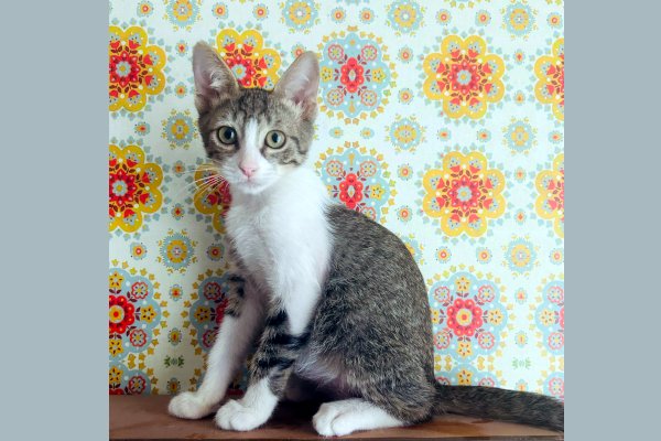 Meet Remi, an absolute sweetheart of a kitten who's ready to steal your heart at first glance! With those captivating olive-green eyes that seem to hold a touch of forest magic, he looks right into your soul. His elegant gray tabby fur is quite striking, but don't let his serious gaze fool you! It contrasts perfectly with his soft white chest and paws, looking as if he's always dressed up in socks and a little shirt, ready for an adventure. His tiny pink nose is so adorable you'll want to give him a little boop, and his white muzzle adds an irresistible touch of sweetness. Remi is pure charm and is looking for a loving home where he can purr contentedly and play all day long. Come meet him at the CCSA, he's eagerly waiting for you!
