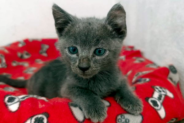 Uva is a fully gray kitten with a sleek, velvety coat reminiscent of a graceful Russian Blue. His black nose adds a gentle contrast to his calm little face, and his gaze is full of quiet curiosity. He was rescued from a well alongside his sister Umi, and every purr feels like a thank-you for his second chance. Uva is soft, sweet, and ready to blossom in a loving home.