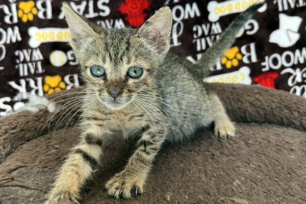 Salty is a gray tabby kitten with quiet charm and a personality all her own. Her soft striped coat is dusted with warm brown accents, giving her a cozy and distinctive look. Her dark nose adds a sweet contrast to her curious little face, and her olive-green eyes shine like enchanted olives, always watching the world with gentle wonder. Salty is calm, thoughtful, and truly special—the perfect companion for those who appreciate subtle beauty and quiet affection.