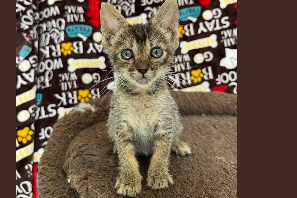 Sunny is a gray tabby kitten with a warm and gentle charm. Her soft striped coat is dusted with cozy hints of brown, as if kissed by sunlight. Her black nose adds a sweet contrast to her expressive little face, and her olive-green eyes glow with quiet curiosity. Sunny may be subtle, but she shines—just like her name suggests. She’s the perfect companion to bring peace and affection into your home.