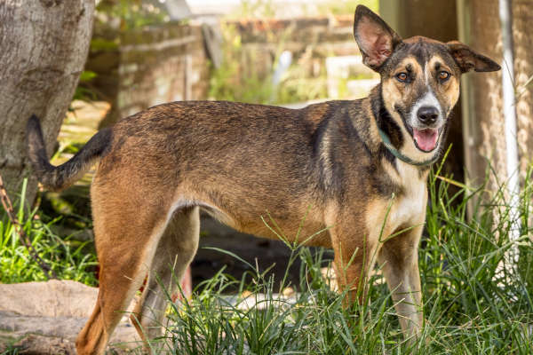 Khaleesi es una perrita adorable que te robará el corazón con su mirada. Su pelaje es una combinación de negro, café y blanco, que le da un aspecto único y elegante. Su cara tiene una máscara oscura que resalta sus ojos expresivos, y su nariz negra contrasta con el blanco que rodea su hocico. Sus orejas son más oscuras que el resto de su cuerpo y le dan un toque de personalidad. Khaleesi es una perrita muy cariñosa y juguetona, que espera encontrar una familia que la quiera y la cuide.