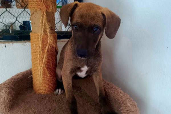 Afrodita es una perrita que parece salida de una vitrina de peluches, pero con corazón de verdad. Su pelaje café, suave y esponjoso, se transforma en tonos negros en sus patitas, como si llevara botines elegantes. En su carita luce una máscara oscura que le da un aire misterioso y encantador, mientras que su naricita negra y brillante siempre está lista para olfatear nuevas aventuras. Una mancha blanca en el pecho y algunos deditos blancos completan su look único. Afrodita es ternura con estilo, lista para robarte el corazón.
