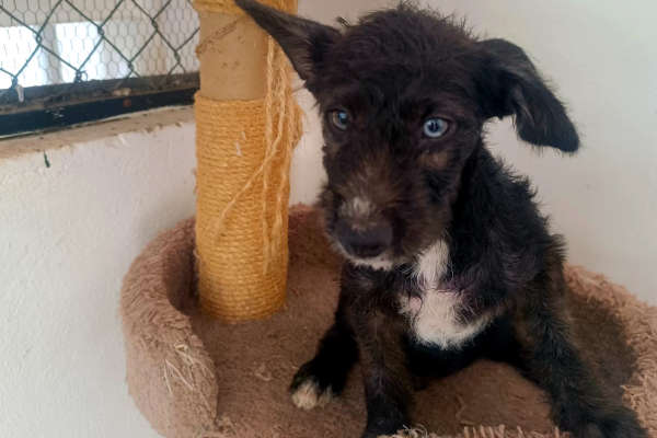 Hades es un perrito que roba miradas desde el primer instante. Su pelaje negro, ligeramente largo y brillante, le da un aire elegante y misterioso, pero lo que realmente lo hace único es su mirada: tiene heterocromía, con un ojo azul como cielo despejado y otro café cálido como abrazo. En el pecho luce una mancha blanca que parece un pequeño escudo de nobleza, y en sus patas traseras, algunos deditos blancos asoman como si llevara calcetines encantados. Hades es belleza, personalidad y ternura en un solo cuerpo.