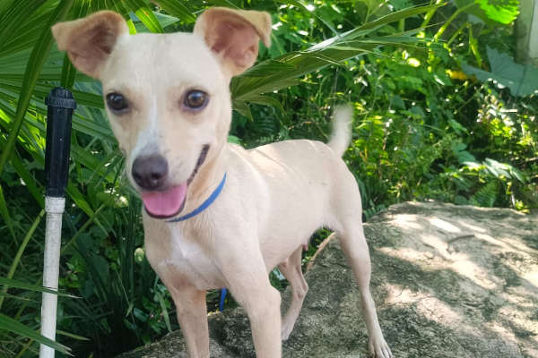 Bellota es una perrita mezcla de chihuahua que parece hecha de caramelo y ternura. Su pelaje beige, suave y cálido, la envuelve como un abrigo de sol, y en el pecho lleva una manchita blanca que parece una estrellita escondida. Sobre el hocico, otra manchita blanca sube con gracia hacia su carita, dándole un toque juguetón. Su naricita negra, siempre curiosa, está lista para olfatear nuevas aventuras. Bellota es pequeña, dulce y perfecta para llenar tu vida de amor.