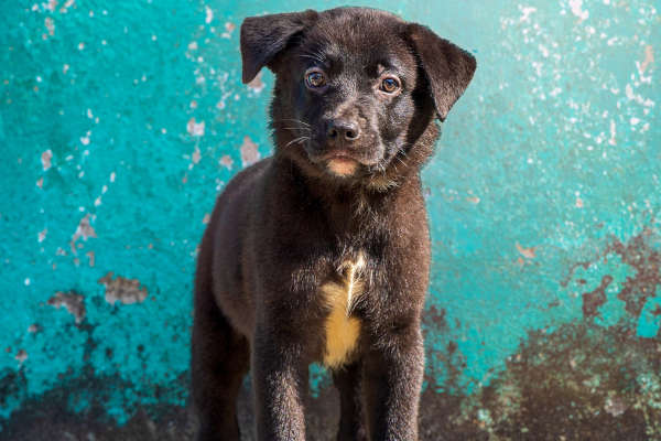 Koda es una perrita de pelaje negro brillante con detalles que la hacen única. En la punta de algunos deditos lleva toques blancos, como si hubiera caminado sobre estrellas, y en la barbilla asoma una manchita blanca que le da un aire dulce y sabio. En el pecho luce una mancha blanca que parece una insignia de ternura, y su naricita negra completa su expresión encantadora. Koda es discreta pero especial, lista para llenar tu vida de compañía y cariño.